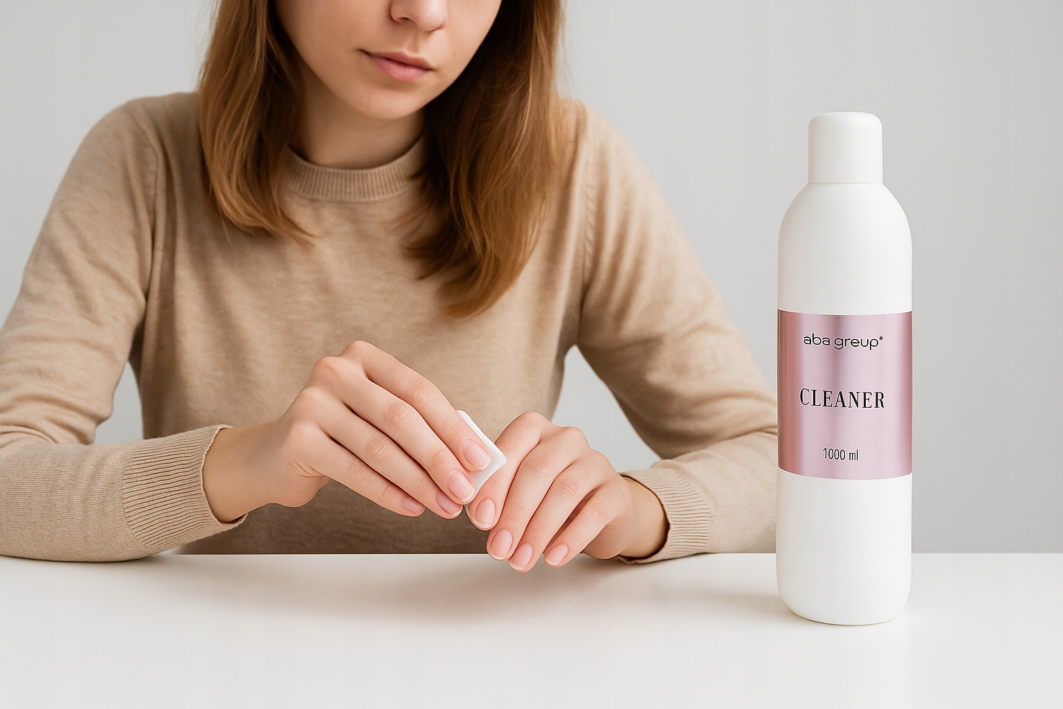 Przetarcie cleanerem poprzedza aplikację primera oraz bazy. Dodatkowo preparat ten jest konieczny do odtłuszczenia topu z warstwą dyspersyjną w końcowym etapie stylizacji.