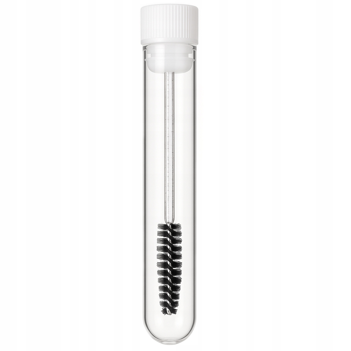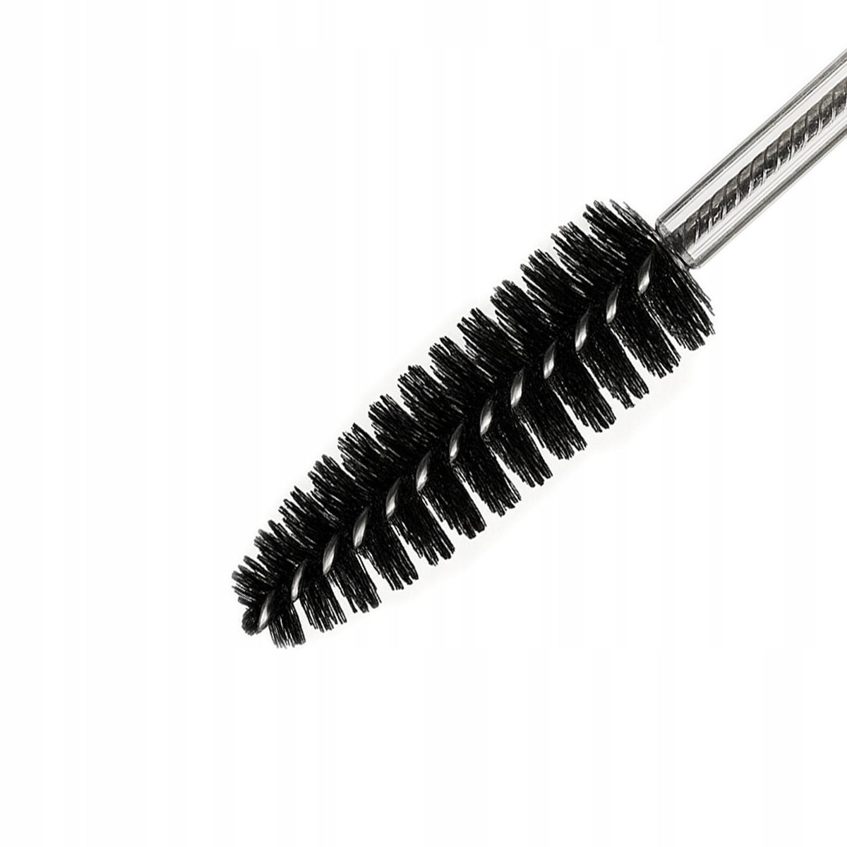 Czarna szczoteczka spiralna zamknięta w przezroczystej, ochronnej tubie, która chroni przed kurzem i zabrudzeniami.