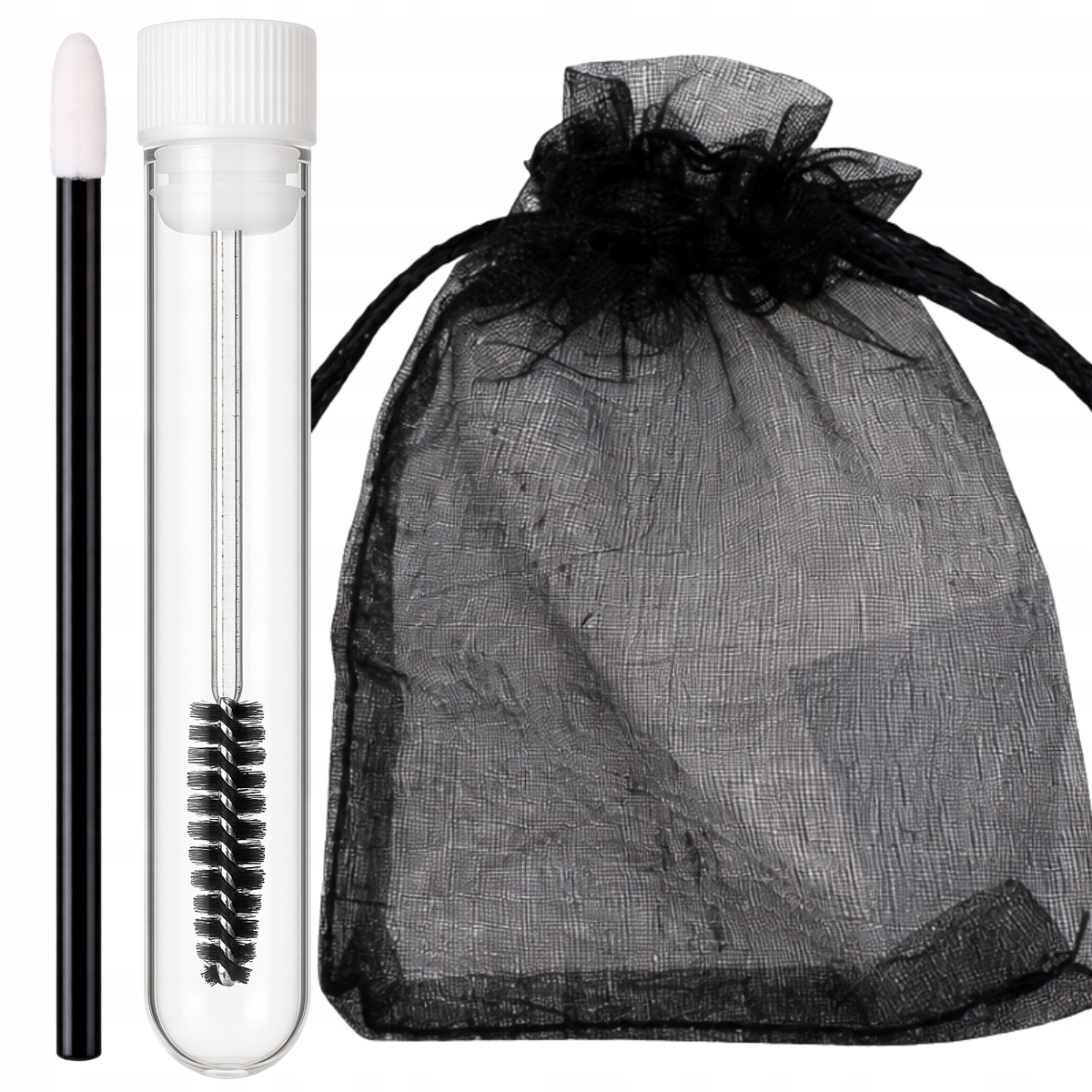 Aplikator welurowy + szczoteczka spiralna w tubie + woreczek z organzy