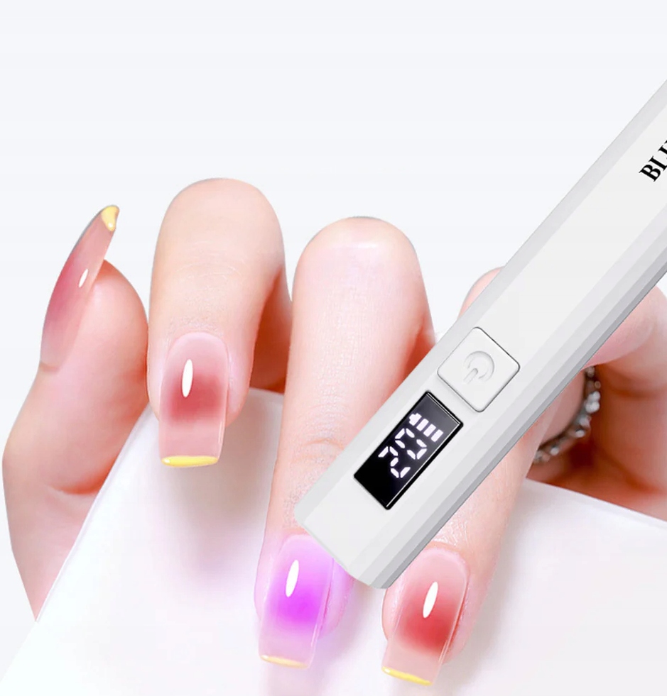 Precyzyjna wiązka światła pozwala na dokładne utwardzanie wybranego paznokcia bez przegrzewania skóry, a ergonomiczna forma ułatwia wygodne trzymanie lampy podczas pracy. Urządzenie działa w trybie bezprzewodowym.