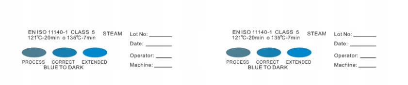 Wskaźnik należy umieścić wewnątrz sterylizowanego pakietu, w miejscu najtrudniej dostępnym dla pary wodnej. Całość umieszczamy w autoklawie (sterylizatorze parowym) na odpowiedni czas i temperaturę. Po prawidłowo zakończonym procesie sterylizacji niebieski wskaźnik powinien zmienić kolor na czarny.