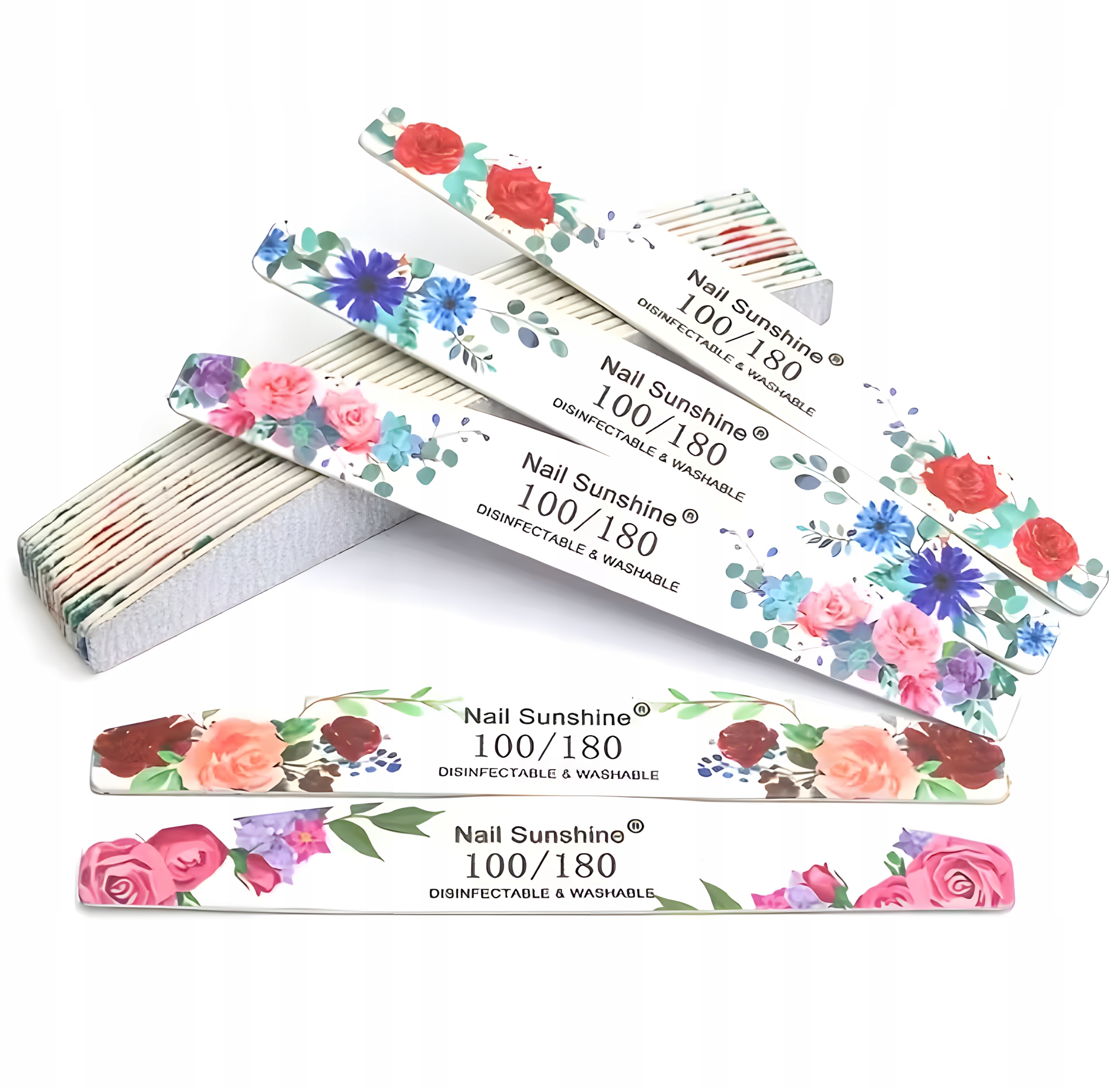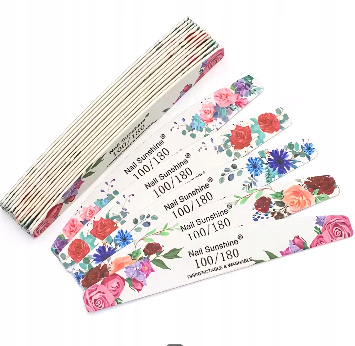 W zestawie znajdziesz aż 50 sztuk pilniczków z 5 różnymi grafikami kwiatowymi, które nie tylko pięknie wyglądają , ale też zapewniają skuteczną i wygodną pracę.