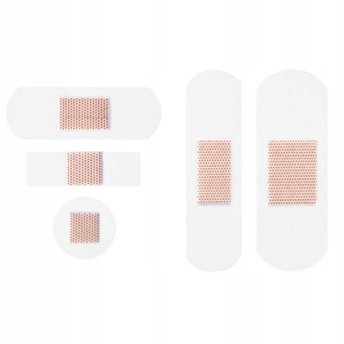 Zestaw plastrów transparentnych przeznaczony do opatrywania drobnych ran i skaleczeń zwłaszcza na dłoniach lub twarzy.