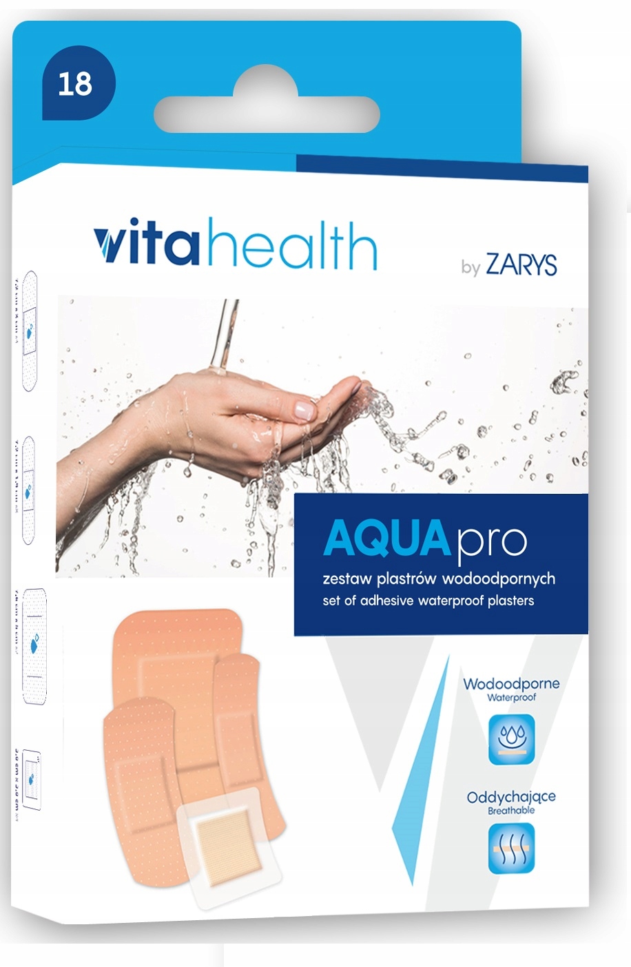 Struktura plastrów AQUApro sprzyja procesem gojenia, ponieważ tworzywo umożliwia dostęp powietrza do opatrywanych miejsc. Różne rozmiary plastrów zawartych w zestawie pozwalają na dopasowanie opatrunku do każdego typu skaleczeń. W zestawie znajduje się 18 plastrów.