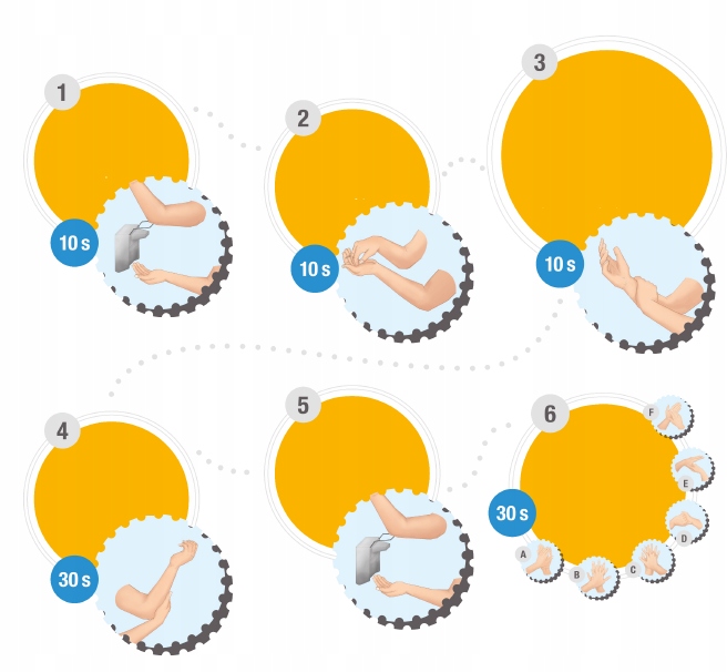☝️ Chirurgiczna dezynfekcja rąk – po wcześniejszym umyciu dłoni nanieść 3 ml preparatu i wcierać przez 30 sekund w skórę dłoni oraz przedramion, zgodnie z procedurą chirurgicznej dezynfekcji metodą wcierania.