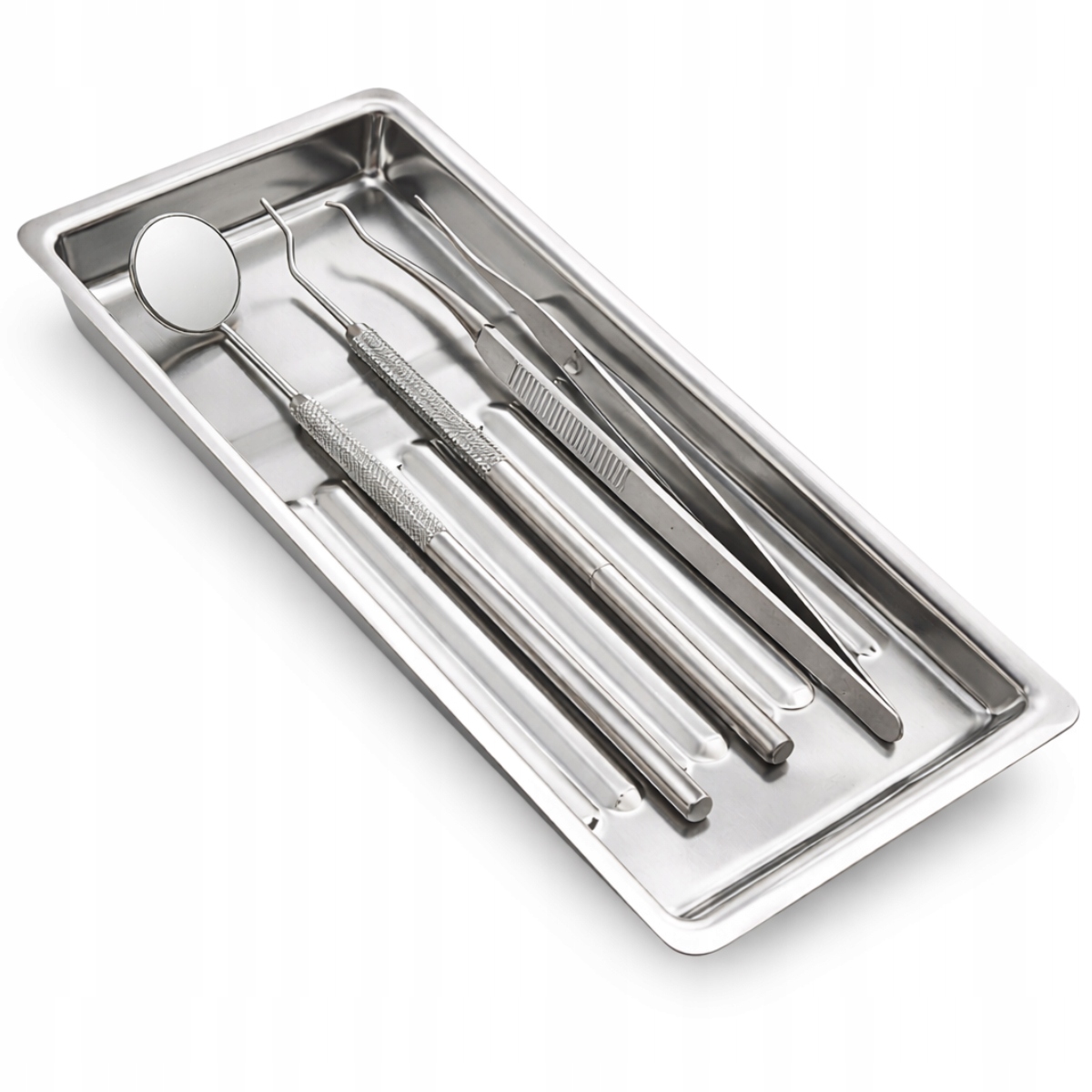 Dzięki kompaktowym wymiarom 19 cm długości i 9,5 cm szerokości tacka zapewnia wygodne ułożenie narzędzi, takich jak pęsety, cążki, dłutka czy sondy, pomagając utrzymać porządek i higienę stanowiska pracy.